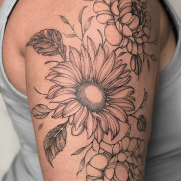 In meiner Arbeit bevorzuge ich Schwarz-Weiß-Tattoos mit dunklen, mystischen und botanischen Motiven. Außerdem mache ich gern individuelle Designs und zeichne direkt auf der Haut. Ich mache auch Fine-Line-Tattoos, farbige Tattoos, elegante Blumen, Ornamente und vieles mehr. Teilt mir einfach eure Idee mit – ich entwerfe ein einzigartiges Tattoo nur für euch.